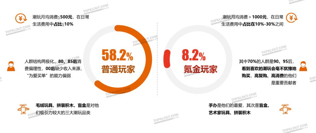 普通玩家潮玩消费月均支出小于500元,“氪金”玩家每月为爱豪掷“千金”,月均支出大于1000元。