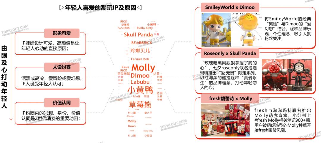 “颜值种草”是吸引年轻人入坑潮玩的第一有效方式,“夺人眼球”的产品受追捧。品牌与潮玩的合作营销迎合年轻族群的潮流审美,能够收割眼球经济。