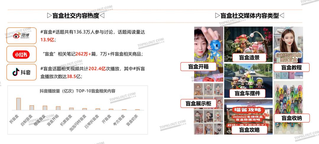 盲盒相关的内容形式丰富,热衷于拆盲盒的社交媒体账号最受用户的喜爱。