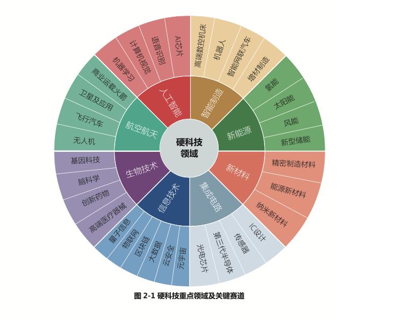 《白皮书》基于硬科技的内涵与分类,通过近一年各领域的信息数据整理及分析,共筛选出了八大领域、33个硬科技关键赛道,如下图所示: