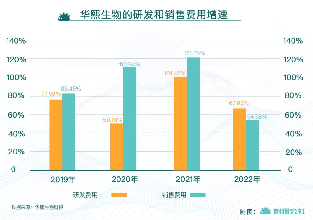 回顾华熙生物从TOB走向TOC的历程,每一步可谓精准果决又极富野心,三年半时间就把功能性护肤品生意做成了华熙生物的强势业务领域。但发力新业务尤其是C端市场,也意味着将会有更高的研发成本和销售投入。