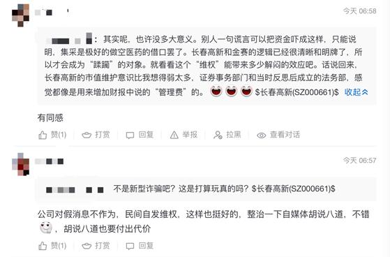 从长春高新因自媒体刊发的一则虚假集采消息跌停起,就有投资者在股吧控诉造谣者。9月4日,《每日经济新闻》发布《利用虚假集采政策做空长春高新牟利,融券空头暴增10倍,投资者惨亏呼吁严查》报道后,在长春高新的投资者平台,呼吁监管机构严查、公司介入、法律途径索赔的发文达上百条。