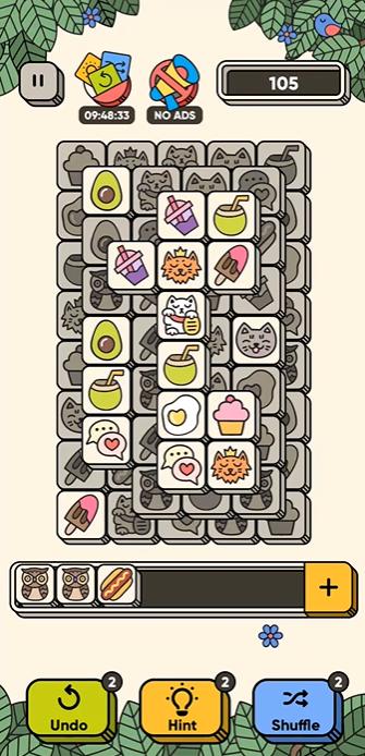 与《羊了个羊》相比,《Tile Master》和《Zen Match》以及《3 Tiles》的大部分关卡图案种类不会超过12种,通常在8-10种;其堆叠层数最多也不会超过10层,通常在5层-6层。