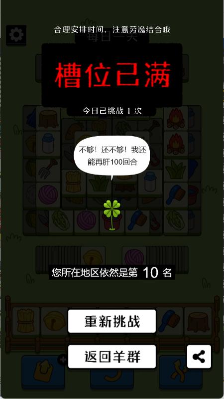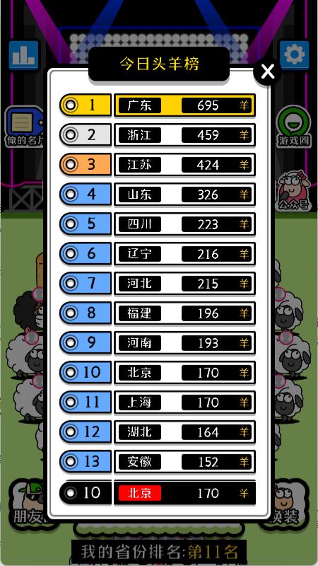 过关后,玩家将为所在的地域羊队增加一分,每局失败还会强调玩家所在地域的排名,并且可以随时查看地域之间的排行榜对比,这些地域对抗的设计制造了冲突点,让玩家更容易上头。
