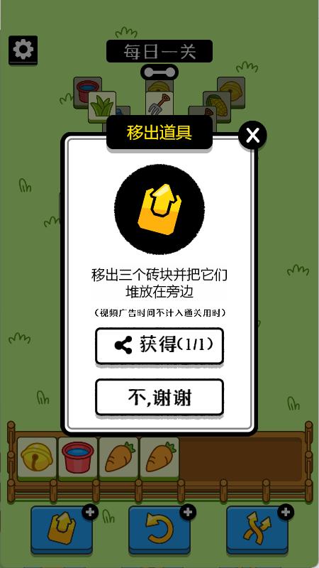并且,其他同类游戏的道具没有上限,而《羊了个羊》算上复活机会,每局只能使用1次【撤回】道具,1次【洗牌】道具,2次【移除】道具。而道具的意义就在于降低关卡难度。