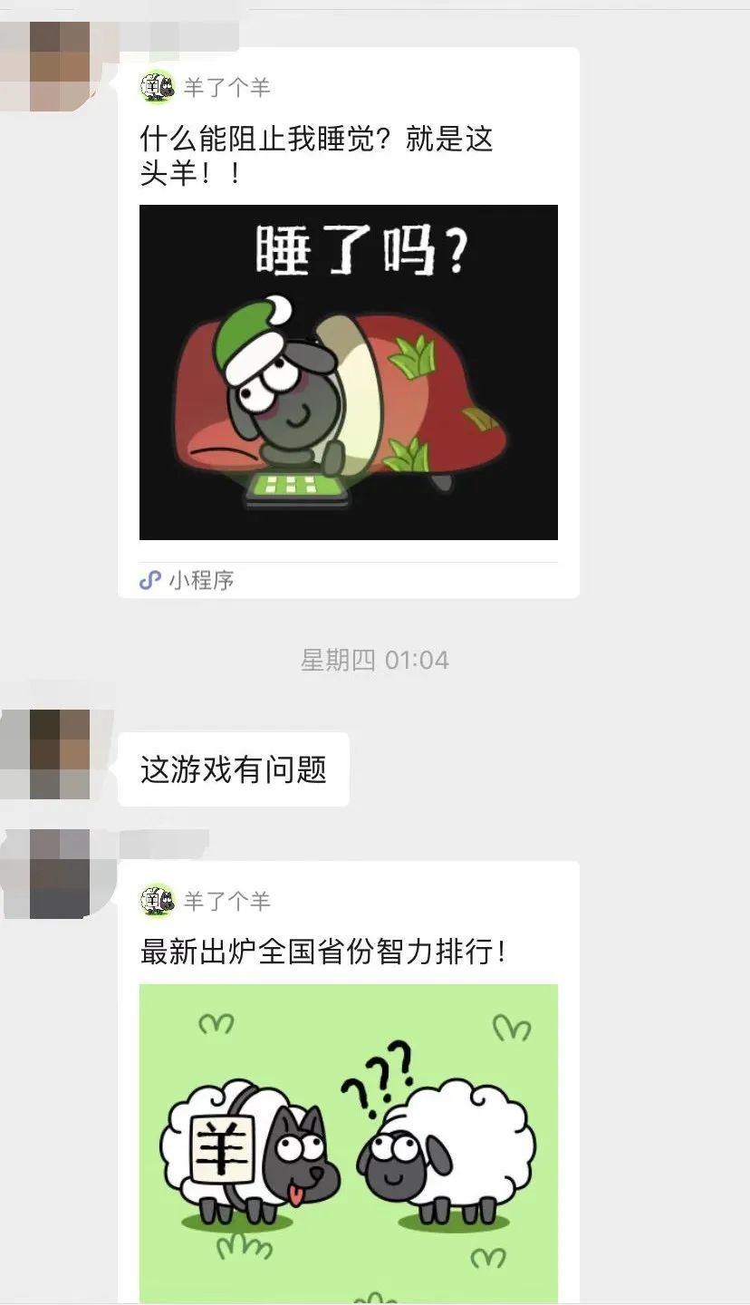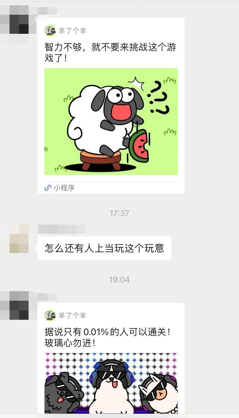 这似乎可以解释,为什么在群聊里一边有人大喊,“游戏是无解的”,“怎么还有人上当”,另一边不停有人转发《羊了个羊》小程序。也可以解释不仅三四线的小镇青年对这一游戏乐此不彼,也有上海F4大厂的员工在得知“假三消”规则后,继续来上一盘。