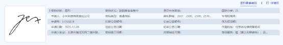 不过,小编发现近日有媒体发布了一则《小米诉争雷军手写签名商标被驳回,与“Jex”近似》消息,称小米公司申请注册的一件雷总签名图形商标被国家知识产权局驳回了。