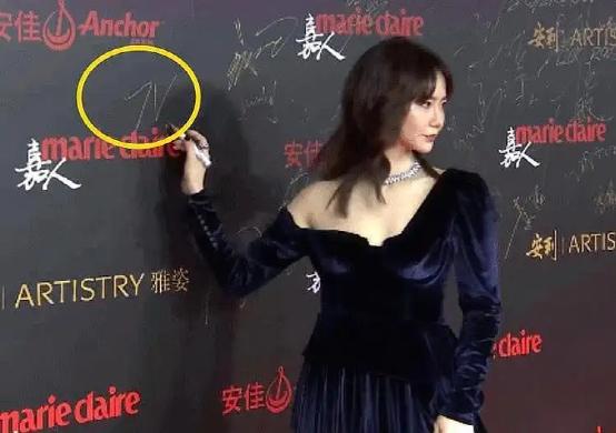 同样很有个性的是戚薇的签名:“7V”(虽然好记好写,但谐音梗扣钱) ,戚薇在某活动上签名7V
