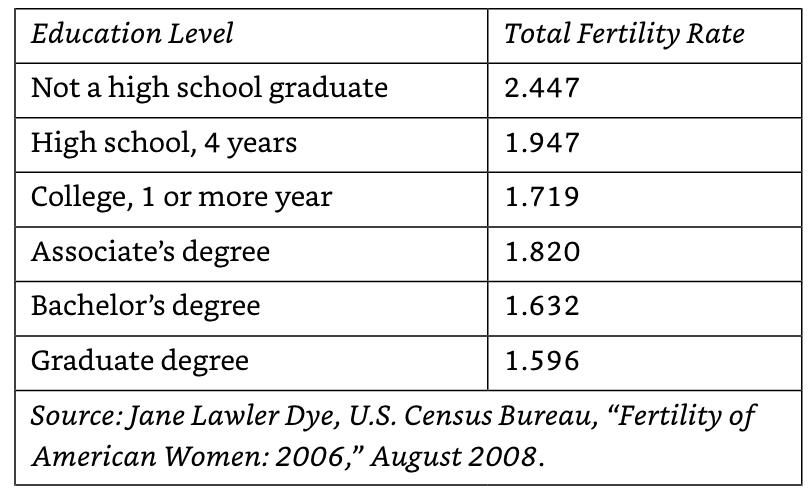 较富裕的家庭会转移对抚养孩子的期望目标,从而降低想要孩子的数量。教育成本尤其会造成一个悖论,你认为自己可以负担得起的孩子数量会随着你变得更富有而减少,因为当你有多个孩子时,再想为每个孩子提供同样的教育机会可能就会变成经济负担。然后是父母自己在教育方面要投入的时间和费用,这些往往又是发生在生育高峰期间。