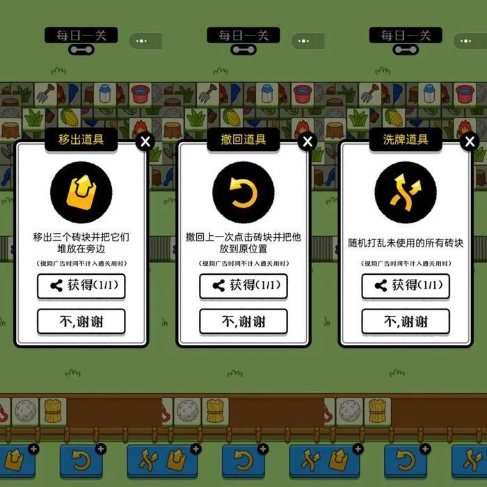 “我未来能够”制造出的则是未来有能力获得的假象,这种借助未来可能性来诱导入局的手法,在“羊了个羊”中体现得淋漓尽致。通关陷入僵局,有道具来弥补;通关失败,看广告可以复活。每一次的重新洗牌都可能迎来峰回路转,每一次的重新开局都可能柳暗花明。“羊了个羊”正是通过创造未来的可能性,引导用户不断尝试,困于局中。