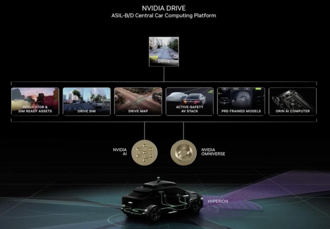 NVIDIA DRIVE是一个面向自动驾驶汽车开发和部署的端到端的平台。在开发方面,DRIVE包括Replicator合成数据生成、NVIDIA AI基础设施、DRIVE Sim和DRIVE Map;在部署方面,DRIVE包括全栈驾驶和车内AI应用、AI计算机和Hyperion自动驾驶汽车参考架构。