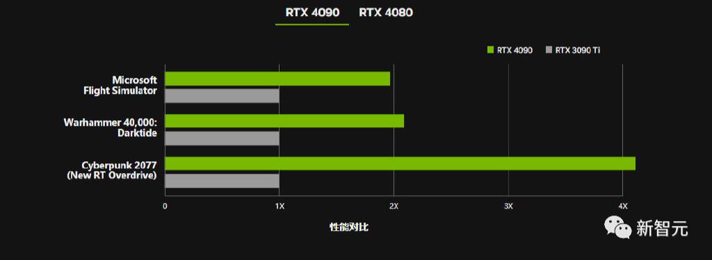 因为刚发布,具体性能跑分和游戏实测目前还没有,不过老黄说,新旗舰4090即使是在优化最渣的《微软模拟飞行》中,性能也达到了30系旗舰3090ti的2倍,《战锤40k: 黑潮》 也是如此。