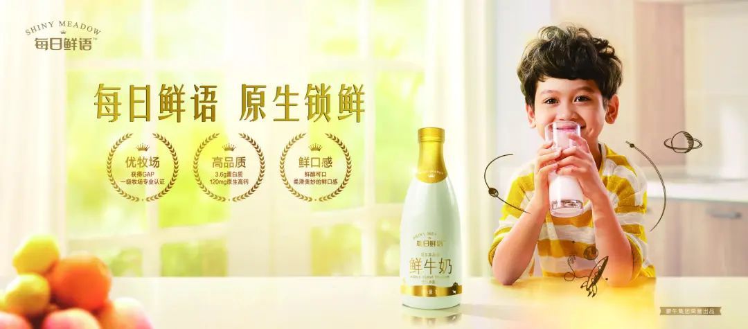 2018 年蒙牛创立每日鲜语子品牌,向高端鲜奶领域进军,坚持采用高标准牧场和高品质奶源。2021 年,每日鲜语推出每 100 毫升牛奶含 4.0 克高蛋白的 4.0 鲜牛奶,远高于《中国食物成分表》中的牛奶蛋白质含量。同时,每日鲜语也利用香槟瓶的外观,从外包装带来高端、典雅的消费体验。