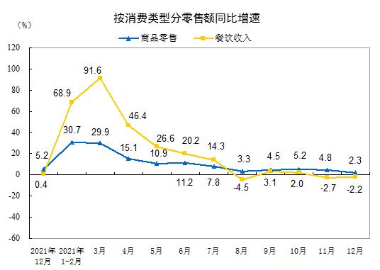 2021年,疫情缓和。消费数据也开始复苏。还是来自国家统计局的数据显示,2021年商品零售393928亿元,比上年增长11.8%;餐饮收入46895亿元,增长18.6%。