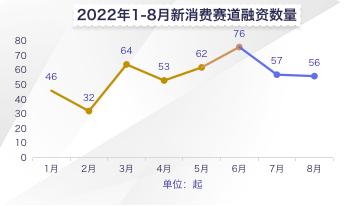根据驼鹿新消费不完全统计,2022年1到8月份,国内新消费赛道共计发生融资446起融资事件,总计获得263.72亿元融资。相比2021年,显然无论从融资数量来看还是从融资金额来看,都是下降的。