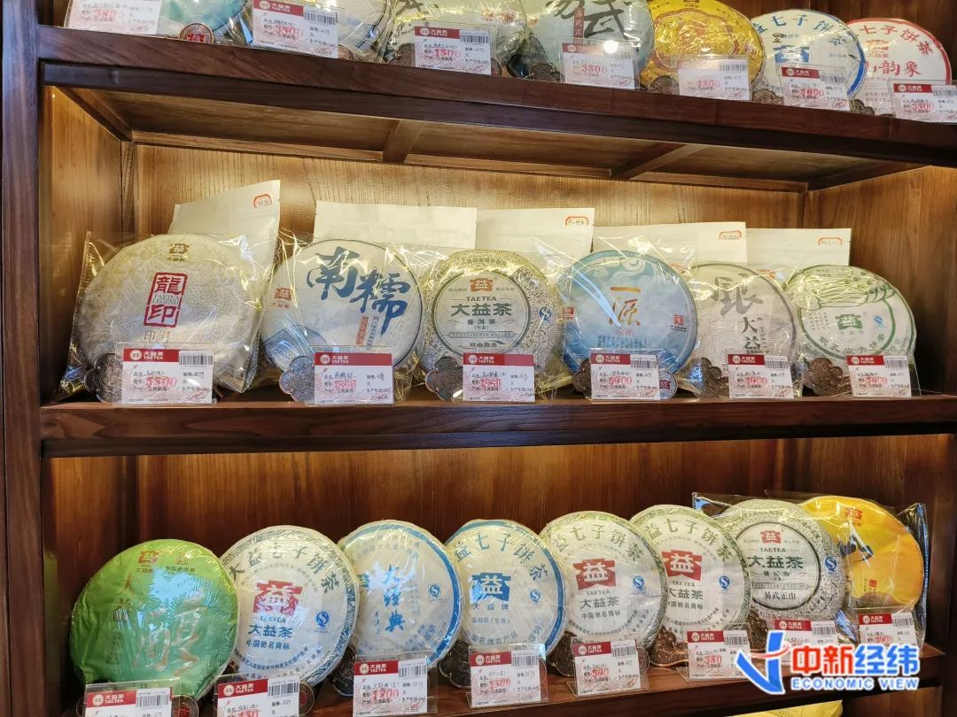 ▲ 大益 专卖店 陈列的 单饼 在 100 0 元 - 6000 元 之间 的 普洱茶 来源:中新经纬 马静 摄
