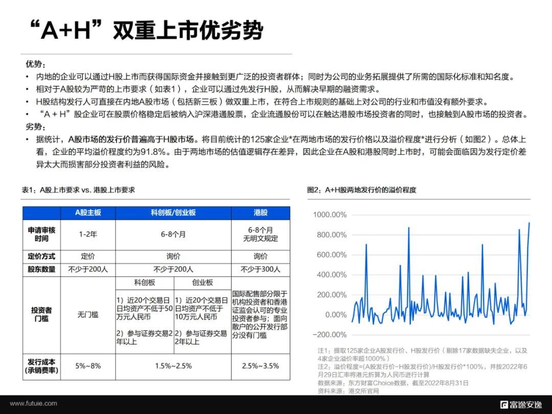 相对于A股较为严苛的上市要求,企业可以通过先发行H股解决早期的融资需求。