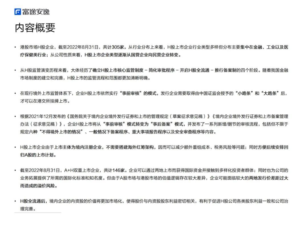 基于以上背景,富途安逸学苑推出《境外上市微报告之H股上市指南》,从H股上市的监管规则、H股上市架构分析、“A+H”双重上市优劣势对比等方面展开探讨。
