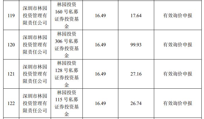 另外,挖贝君进一步翻阅华岭股份网下投资者报价明细表发现,私募大佬林园强势回归。深圳市林园投资管理有限责任公司旗下约80只基金参与报价,占到参与华岭股份报价者总数量的近1/3。