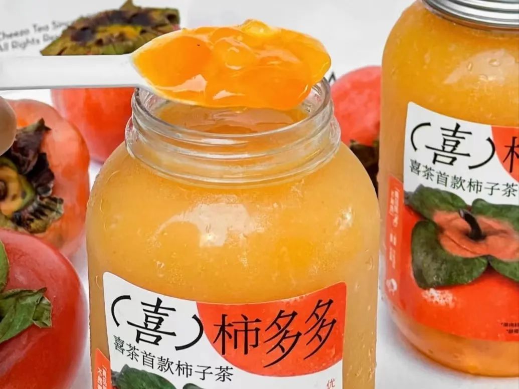 这两天,喜茶首款柿子茶喜柿多多上线,吸引了一大片打卡,网友形容它“像直接喝冻柿子”。