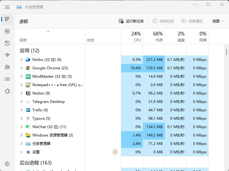 同样继承自 Windows 8 的任务管理器也在 Windows 11 22H2 里焕然一新。不同于旧版,新版的任务管理器从设计上采用了 Windows 11 推荐的设计风格,将原本横向的子标签页变为了侧栏,兼顾信息密度的同时保证了良好的可用性。和旧版任务管理器不同,这套新界面是支持暗色模式的。