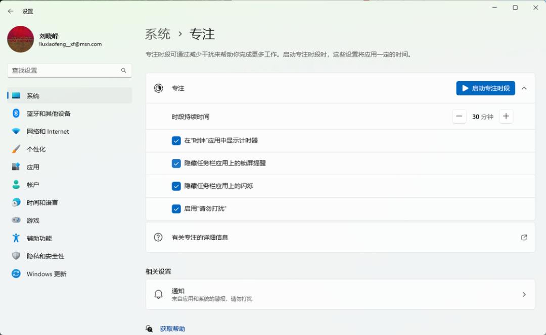 早在 Windows 10 中 Microsoft 就早早地引入了「专注助手」功能,但在那时相对死板的「专注助手」功能并不好用,既不能限定应用,也不能灵活开启。在 22H2 版本中 Microsoft 选择将原先的「专注助手」拆分为「勿扰」和「专注」两个功能。
