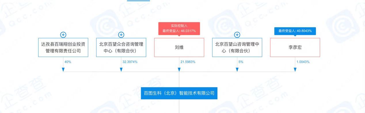 我们看到,李彦宏并没有以百度的名义投资百图生科,而是用个人资金投资。根据企查查的信息显示,百图生科的两大最终受益人是李彦宏和刘维,前者最终受益股份为40.8043%,后者为46.0317%。而此前,百度的风险投资投资多家AI药物设计公司、做生物传感器的公司,以及其他多种前沿生物技术,基本上都是公司直接入股。