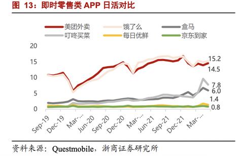 确实,美团作为本地生活的硬核选手,连阿里也讨不到好。看一组数据,感受下京东和美团即时零售领域的力量对比。