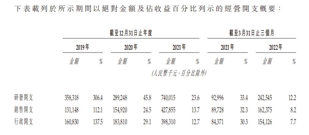 招股书显示,2019年-2021年,零跑汽车的研发费用分别为3.58亿元、2.89亿元以及7.4亿元,三年合计研发费用仅为14亿元左右。
