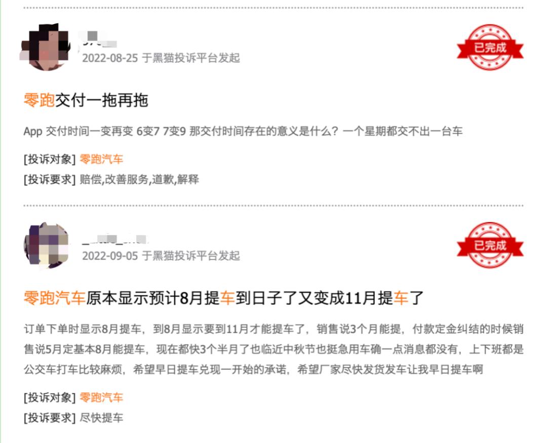 在相关投诉贴中,不少零跑汽车均反馈车辆等待交付周期过长,经常性出现延期交付以及私自更改交付日期的情况。