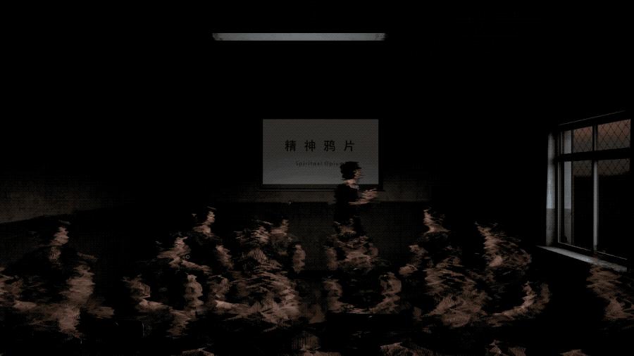 走廊串起的房间里,“你”遇到了这里的学员,他们的面部是一片动态的模糊,没有明确的五官。在 VR 场景里,人物模型需要许多面,为了减少渲染压力,这是一种技术上更简单的处理。