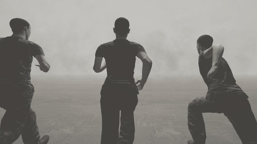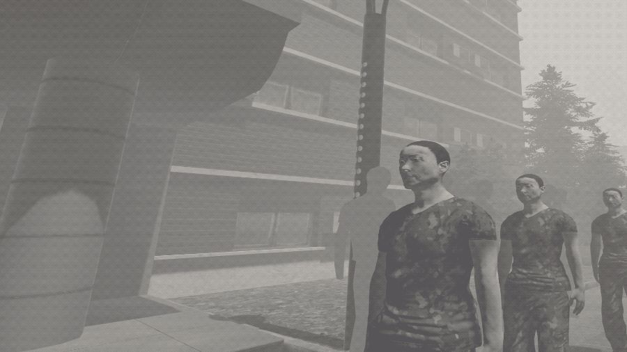 探索楼层之后,“你”会跟着列队跑去操场,基地里早晚都有这样的操练。在这时,所有人都又有了面孔。“你”回头看见,是十几张一模一样的脸。