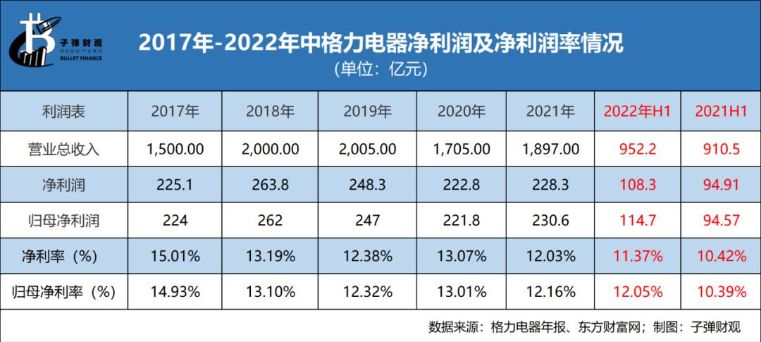 截至2022年6月末,格力的净利润约108.30亿元,同比增长14.11%,净利润率为11.37%,比上年增长0.95个百分点。归母净利润约114.70亿元,同比增长21.29%,归母净利润率为12.05%,比上年增长1.66个百分点。