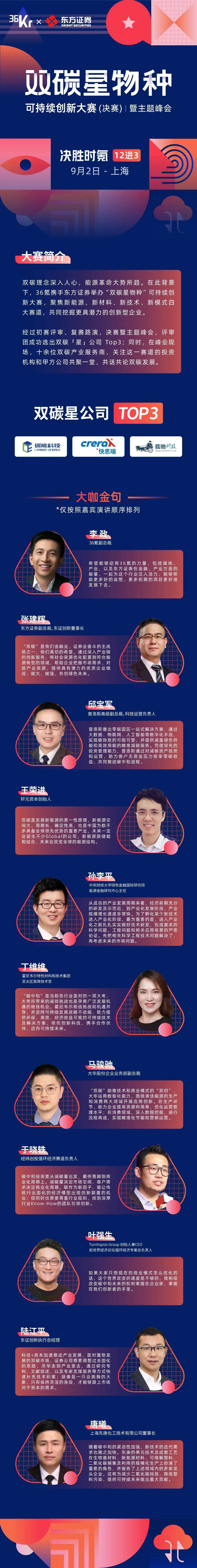 36氪携手东方证券举办的“双碳星物种”可持续创新大赛已圆满落幕,在决赛暨主题峰会上,诸多行业嘉宾分享了他们对于“双碳”领域的最新认知,以下是他们的精彩观点集锦: