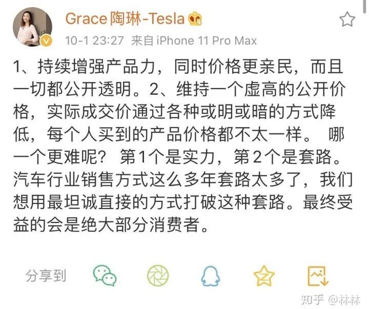 知乎 - 如何看待特斯拉 Model 3 十月一号降价?;@林林