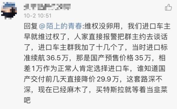 有网友说是特斯拉直营卖车模式的锅,说直营模式卖车没有以前传统车企经销商卖车那种 “ 降价缓冲期 ”。