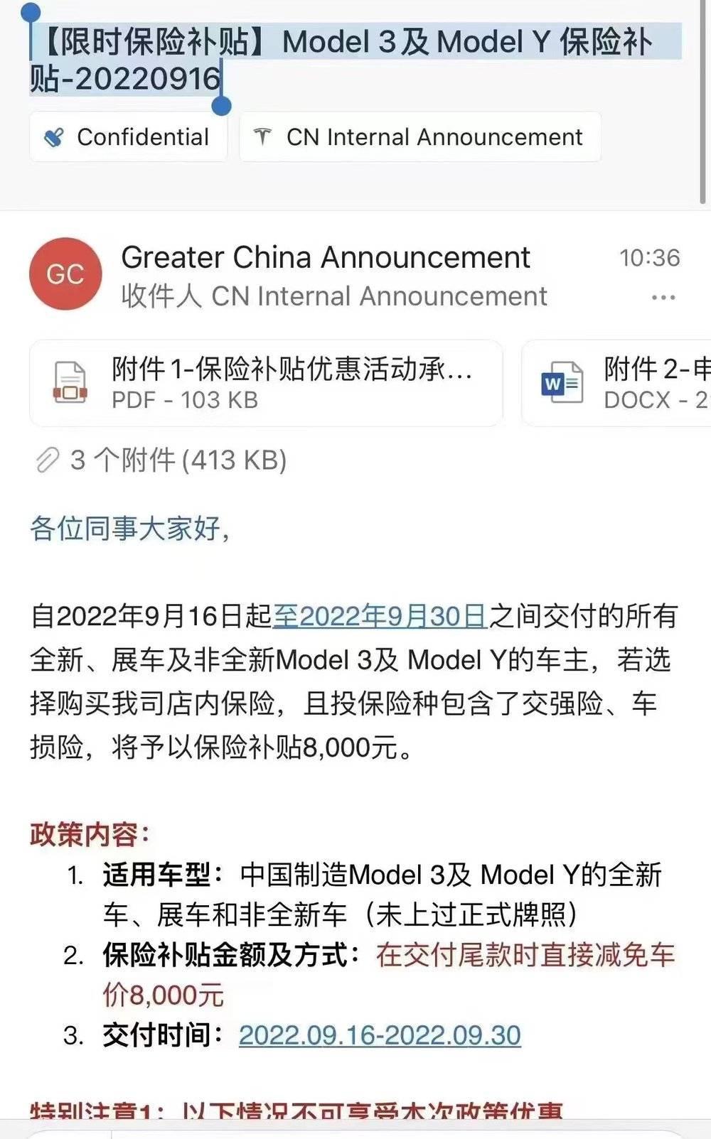前几天,一封疑似特斯拉内部的邮件曝光,内容是今年 9 月 16 日 - 9 月 30 日交付拿到特斯拉 Model 3 和 Model Y 的车主,如果直接在特斯拉直营店上保险,特斯拉会补贴车主 8000 元。