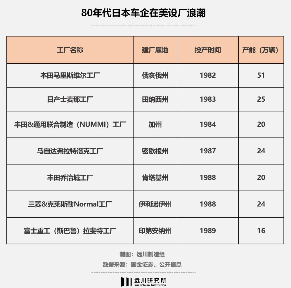 1980年,石油危机影响下,日本的小排量汽车在美国大获全胜。当年,日本向美国出口192万辆车,获得20%市场份额,底特律三巨头纷纷亏损。见此情况,美国与日本“友好协商”,让日本自愿限制了向美国出口汽车的数量。作为条件,美国鼓励日本到本土设厂。