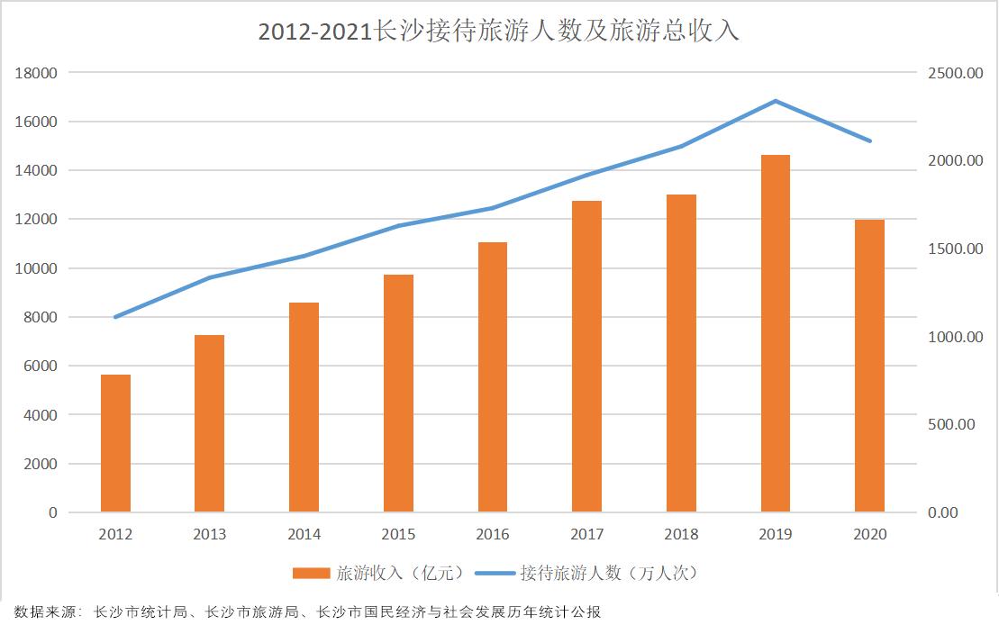 到2020年,长沙接待国内外游客15194.31万人次,旅游总收入1661.32亿元。