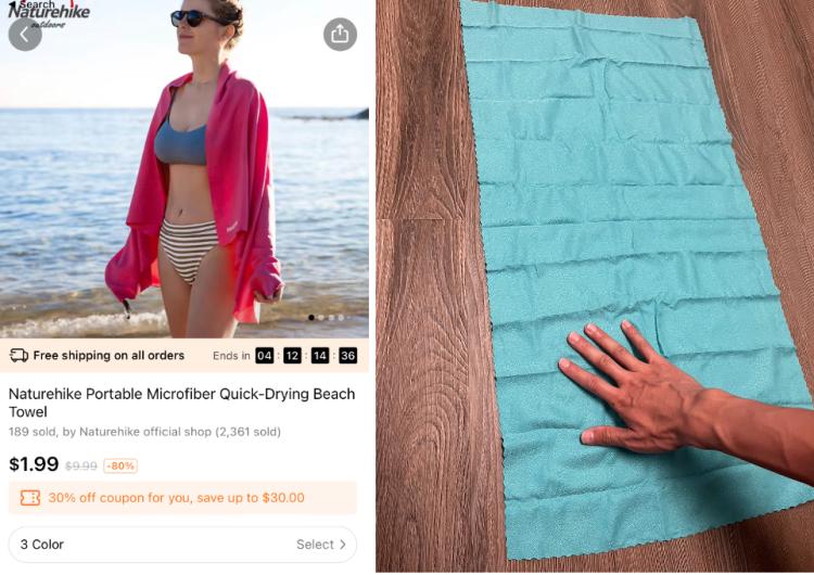 唯一令人失望的是,快干沙滩巾似乎比网站图片上展示的要小上60%,70% 左右。 “这有被误导和欺骗的感觉,但不到两美元,倒也说得过去。”Vivian说到。