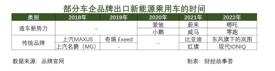 而至于传统车企,比亚迪的乘用车在2021年才正式出海,也晚于上汽和东风。