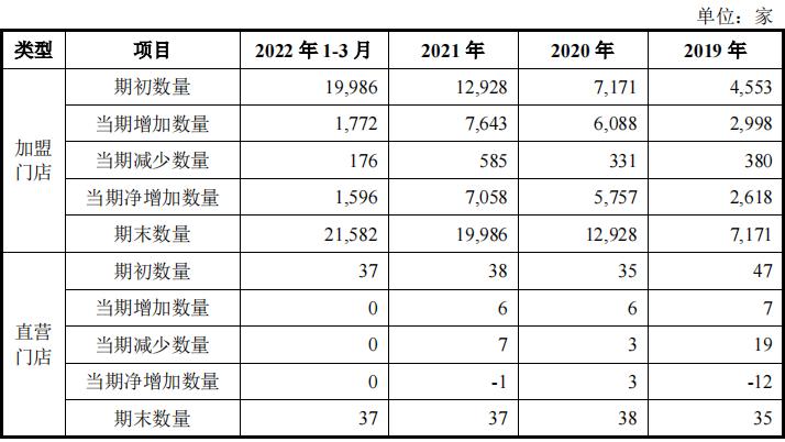 截至2022年3月,蜜雪冰城共有加盟店22229家、直营门店47家,共计22276家。其中,蜜雪冰城还将业务拓展至海外,在印尼、越南分别开设317家、249家“蜜雪冰城”门店。