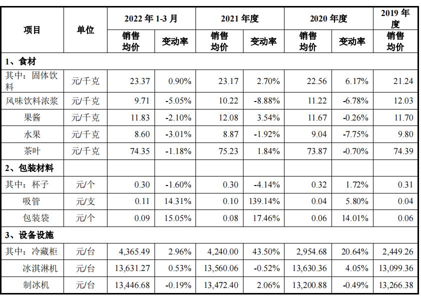 食材主要由蜜雪冰城的生产主体大咖食品生产加工后向加盟商销售,涉及固体饮料、风味饮料浓浆等核心食材,同时也通过第三方采购后直接对外销售。为了提升销售效率,进一步掌控加盟商,食材、包装材料及设备设施由蜜雪冰城的全资子公司上岛供应链、宝岛商贸、叁峡商贸、壹滴水商贸和滴水川石五大商贸主体分别向不同地域的加盟商销售。