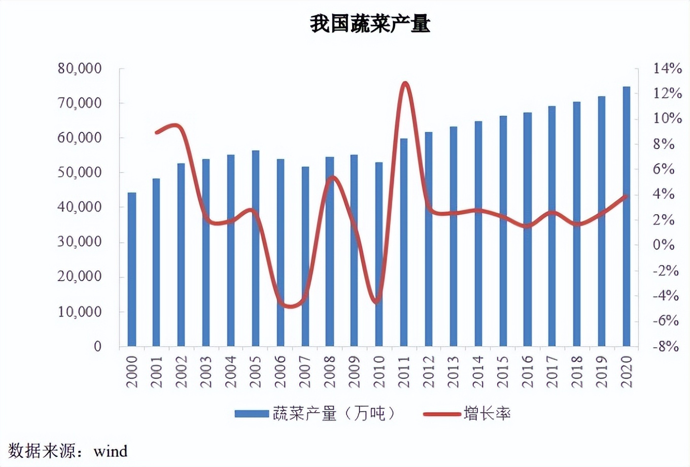 据了解,种业大部分集中于粮食、油料、棉花、蔬菜等农产品领域。2019年,我国蔬菜种子市场规模约为155亿元左右,约占我国种子市场规模的12.8%。我国是世界上最大的蔬菜生产国和消费国,占世界蔬菜产量50.66%。2012年以来,我国蔬菜总产量每年平稳增长,平均增长率为2.54%,同期蔬菜种植面积的平均增长率为 2.04%。蔬菜种植面积和产量的平稳增长,带动了蔬菜种子产业的发展。