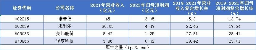 受益于农药、种业市场的平稳发展,绿亨科技近年来业绩也稳步提升。2019年-2021年,公司营业收入分别为2.71亿元、3.29亿元、3.86亿元,近两年复合增长率为19.42%;归母净利润分别为4142.77万元、5449.61万元、6269.59万元,近两年复合增长率为23.01%。