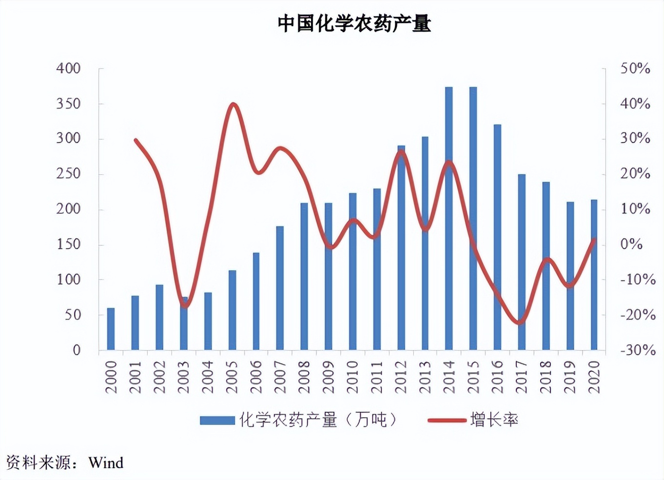 随着我国环保安检各项政策持续推行,农药生产受到较大冲击,落后的中小产能陆续退出,中高端产能逐步增长。2020年我国农药产量为214.8万吨,2021年1-9月我国农药产量为189.4万吨,同比增长25.85%,总体上农药产量稳健发展并有上升态势。