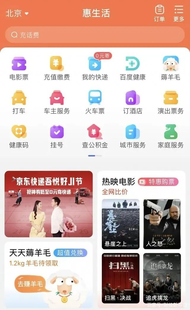 2020年4月,“惠生活”智能小程序在百度App上线,一站式聚合电影购票、充值缴费、医疗健康、快递服务、城市服务、旅游出行、家庭服务等第三方本地生活服务功能。