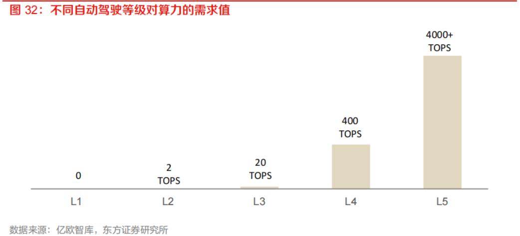 对于电动汽车来说,若是要实现L1、L2这种等级的自动驾驶,需要处理的数据并不多,对芯片算力的要求也不高,单颗算力不到10TOPS的芯片也能满足要求——这块市场主要被英特尔收购的Mobileye吃下。