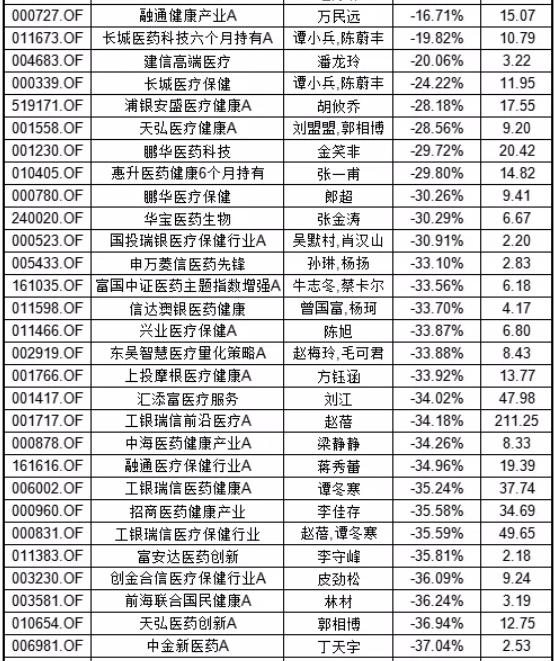 其实,医药的这一波下跌也很难太过责难我们的医药女神。医药这波,真的是一跌就是一窝。还是那句话,覆巢之下……看看2021年7月到2022年2月以来医药主题基金的收益就知道了: