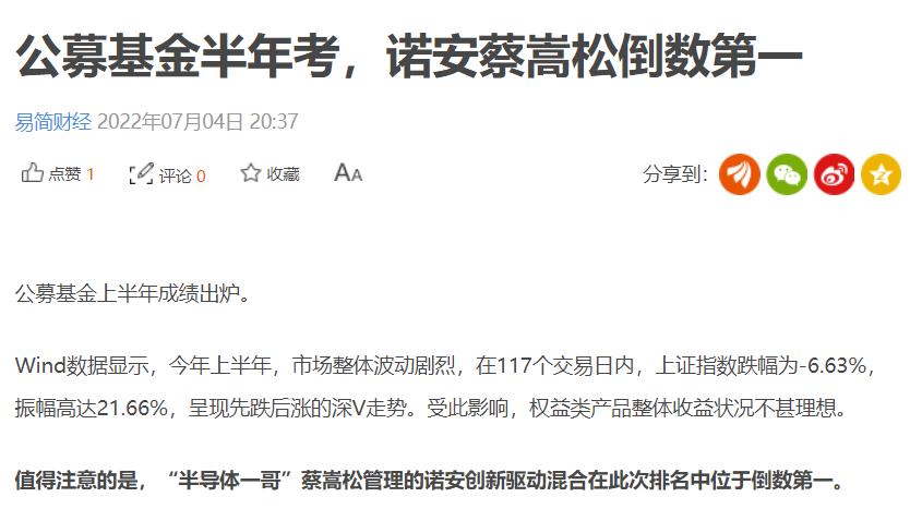 一看业绩好家伙!今年上半年的基金业绩排名,万家宏观择时多策略以52.63%的收益率位居权益基金榜首,而排名末位的诺安创新驱动与其相比,收益相差近90%,而这支就是咱们事件主人公蔡嵩松执掌的基金。